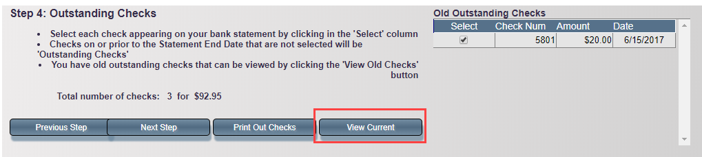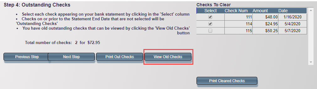 - Once all “Old Outstanding Checks” have been cleared, the View Old Checks button will no longer be visible.