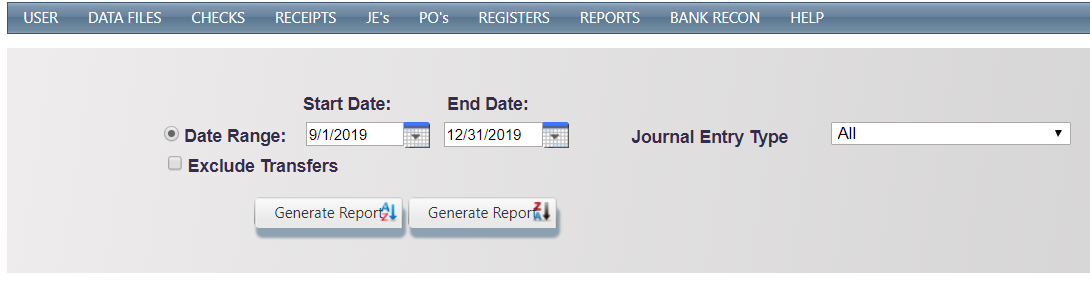 - Generate Report A - Z will list journal entries in order from lowest number to highest number.