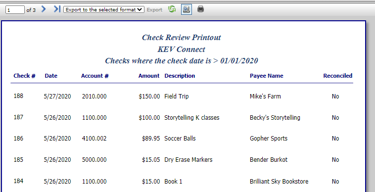 The Review Checks screen provides an online detailed viewing of posted checks.
